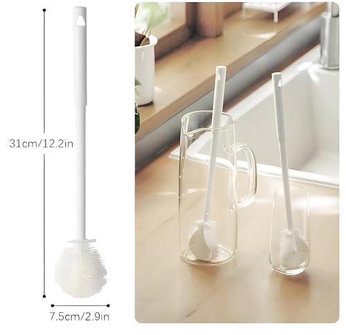 - صُممت فرشاة الأكواب المصنوعة من السيليكون ذات الشعيرات الناعمة بشعيرات سيليكون مرنة تمنع تراكم البقايا والروائح الكريهة التي ترتبط عادةً بالفرش الإسفنجية. كبديل أكثر نظافة، تحافظ على أدوات مطبخك برائحة منعشة ونظيفة، مما يضمن نظافة لا تشوبها شائبة لأوانيك الزجاجية المفضلة، والفازات، والشفاشق، والخلاطات، وغيرها من البرطمانات ذات الرقبة الضيقة.