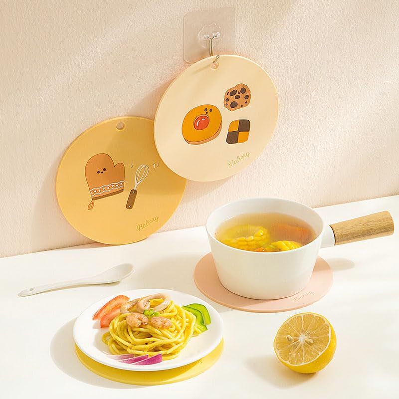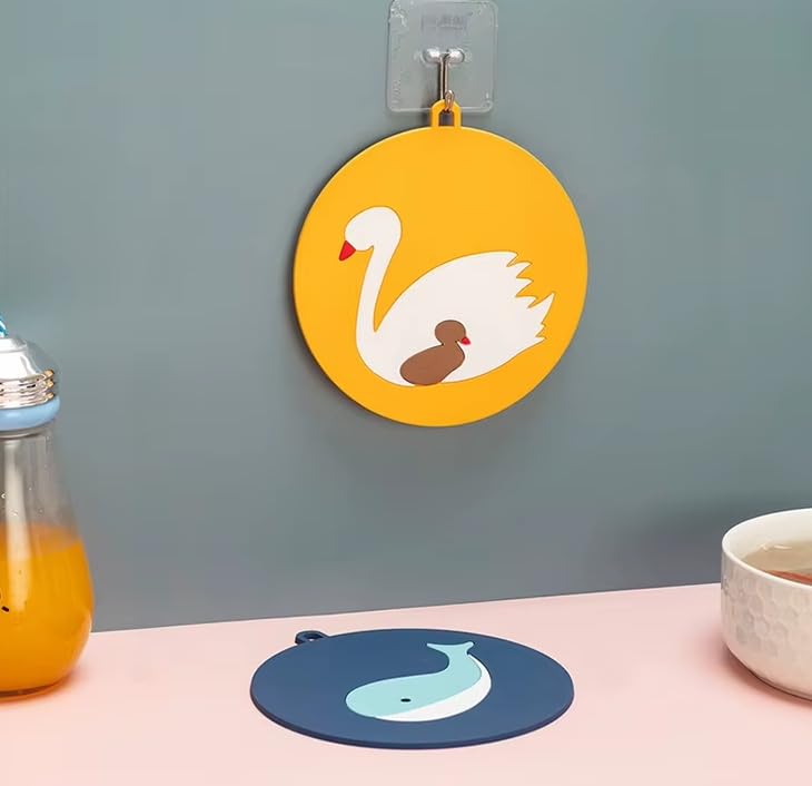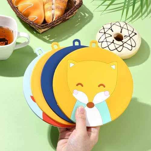- ١) تصميم مبتكر: قواعد سيليكون بأشكال كرتونية جذابة ومرحة، مثالية لتزيين طاولة الطعام وحماية الأسطح