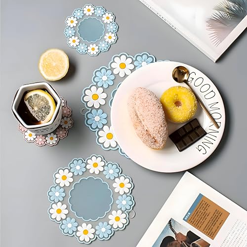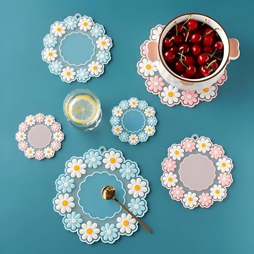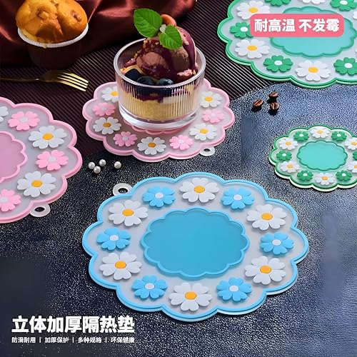 - مصنوعة من السيليكون الناعم، هذه القواعد المستديرة المنقوشة عازلة للحرارة وغير ماصة وتحمي الأثاث من الحرارة والماء والزيت بينما تبقى لطيفة على الأسطح وثابتة بهدوء عند وضع الأكواب.