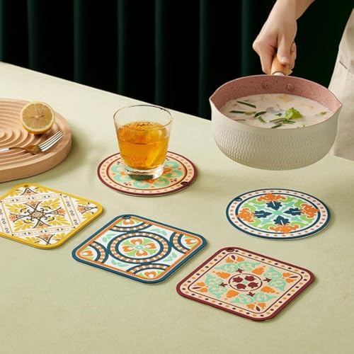 - مادة سيليكون فاخرة: مصنوعة من السيليكون المتين عالي الجودة الذي يوفر مقاومة ممتازة للحرارة ويحمي طاولاتك وأسطح الطاولات والأثاث من علامات المشروبات الساخنة والباردة