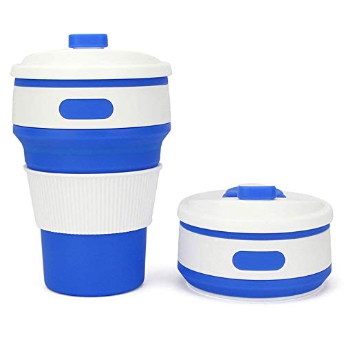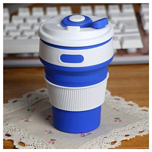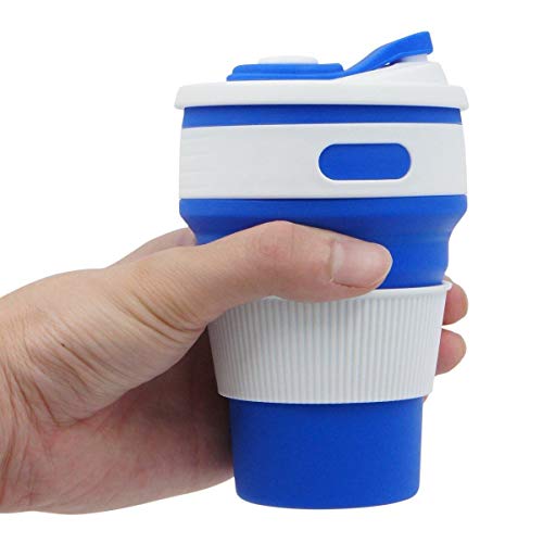 Spaceshoop - كوب قهوة قابل للطي من السيليكون 350 مل مريح للسفر خفيف الوزن الامن غذائيا والبولي بروبيلين خال BPA للتخييم والمشي لمسافات طويلة والركاب في الهواء الطلق - ازرق رامانل
