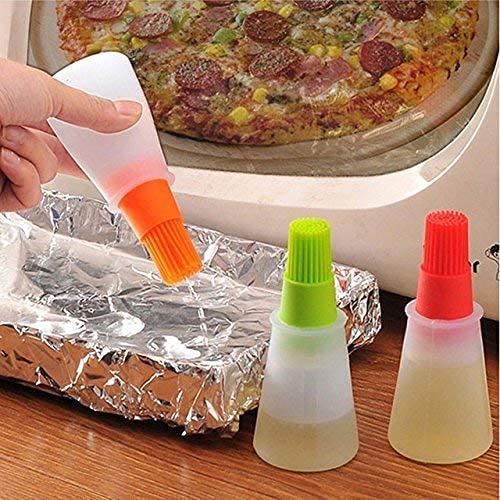 Generic - فرشاة زيت الطبخ من السيليكون | زجاجة سيليكون مع فرشاة دهن | فرشاة للقلي والخبز والشوي والقلي والشواء وموزع زيت الطهي، اكسسوارات ادوات المطبخ | متعددة الالوان - عبوة من قطعتين