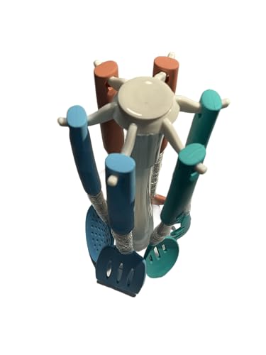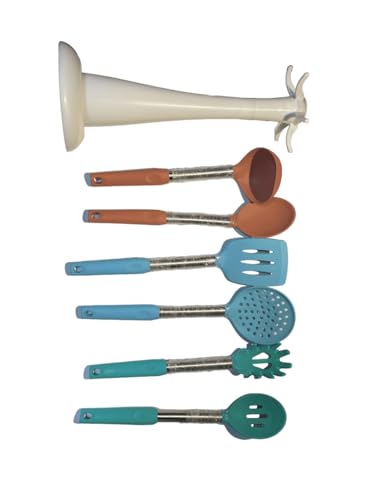 Happy Square - أدوات طبخ بمقبض سيليكون وحامل بلاستيكي 30 × 18 × 15 سم، طقم من 7 قطع، طقم توزيع سيليكون، ألوان متعددة