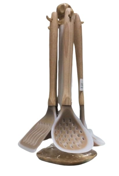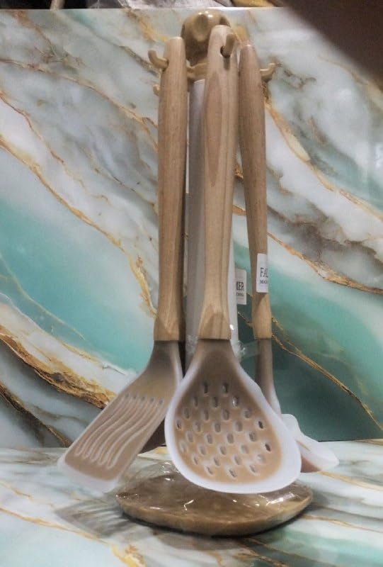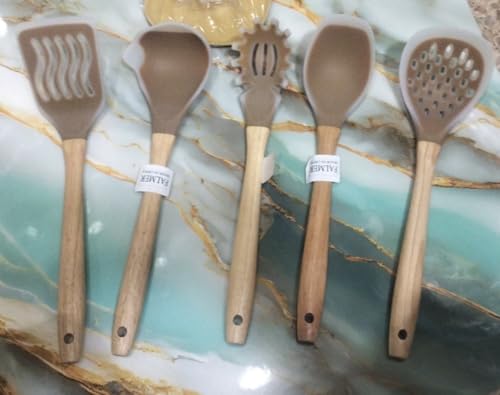 Generic - طقم توزيع أدوات طبخ سيليكون مرن بيد خشبية طبيعية مقاومة للحرارة مكون من 6 قطع أساسية للمطبخ s