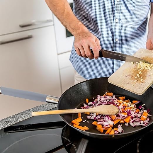 - تصميم مريح وغير قابل للانزلاق: يتميز الغطاء بملمس ناعم ومريح يساعد على تحقيق قبضة قوية وآمنة، مما يمنع المقلاة من الانزلاق من يدك أثناء الاستخدام.