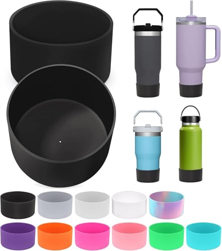 Generic - غطاء سيليكون واقٍ لقاعدة الكوب أو زجاجة المياه، اكسسوار للكوب مضاد للانزلاق ويمتص الصدمات، قطعة واحدة، أسود