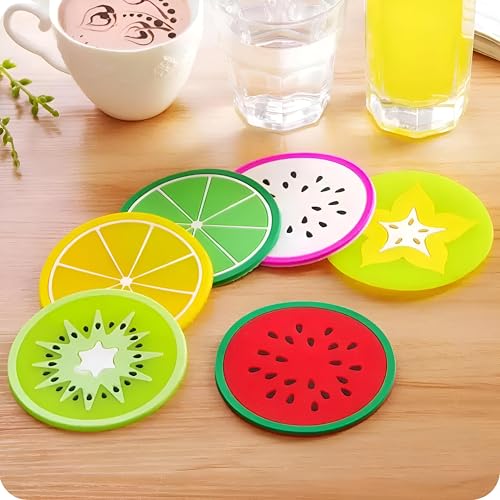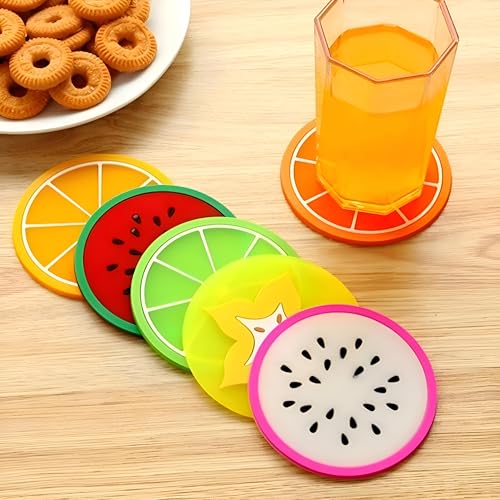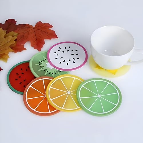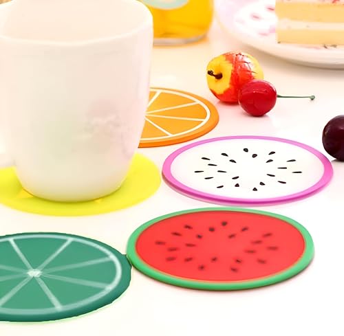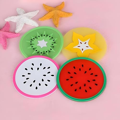 Generic - قاعدة أكواب سيليكون بأشكال فواكه، غير قابلة للانزلاق، للاستخدام في المطبخ أو كديكور منزل، طقم من 4 قطع، متعددة الألوان