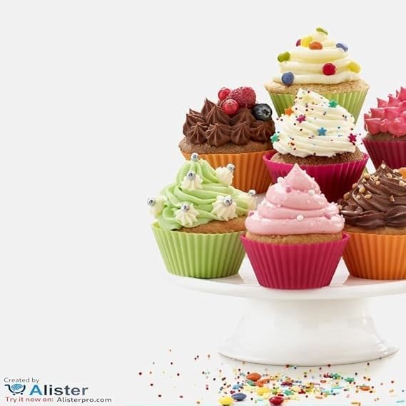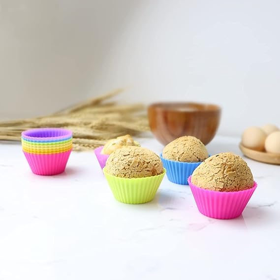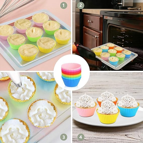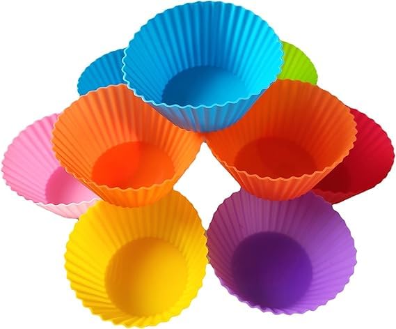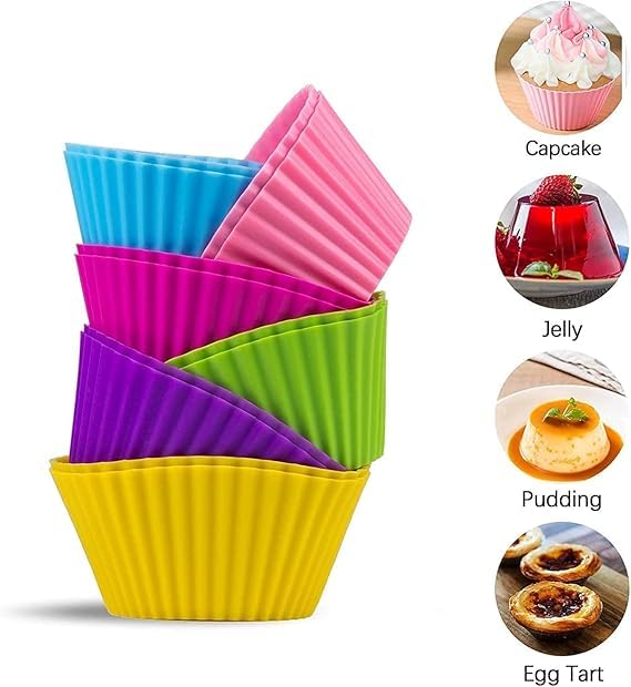 Generic - قالب كب كيك سيليكون قابل لإعادة الاستخدام مناسب للكب كيك والمافن والتشيز كيك، بطبقة طلاء غير لاصقة آمن غذائيا والبودينج والآيس كريم الذي تصنعه بنفسك، 12