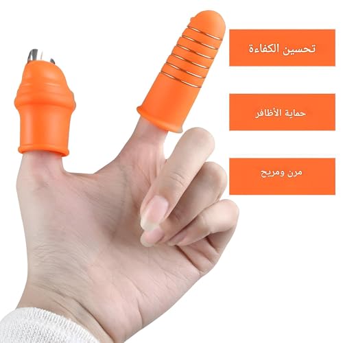 - مزودة بواقي إبهام من السيليكون يلتف بإحكام حول الإبهام ليمنح قبضة ثابتة ويحمي الأظافر والأصابع من الجروح والخدوش، ما يجعل استخدام السكين أكثر أمانًا سواء أثناء تحضير الطعام أو العمل في الحدائق.