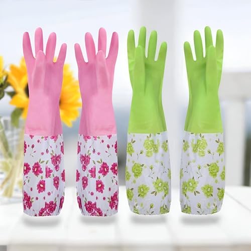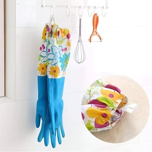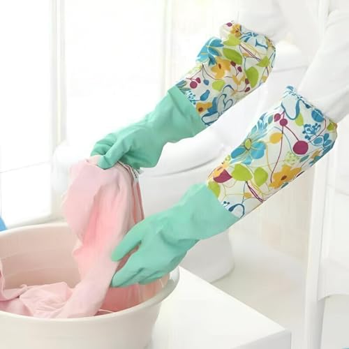 Generic - جوانتي سيليكون لغسل الأطباق بأساور عريضة وطويلة، مرن وغير قابل للانزلاق بتصميم سهل للإمساك والاستخدام المريح عند غسل الحلة والمقالي والأطباق - متعدد الألوان
