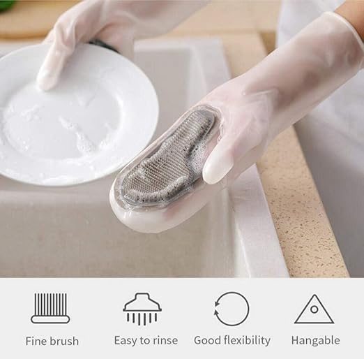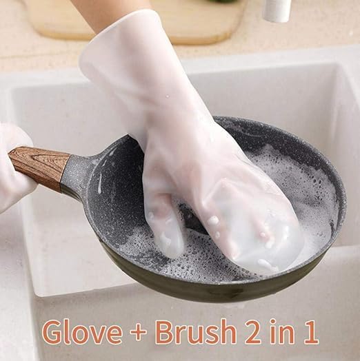 Generic - جوانتي سيليكون لغسيل الأطباق مع فرشاة تنظيف، قفازات تنظيف مقاومة للماء والحرارة وقابلة لإعادة الاستخدام لحوض المطبخ والطاسات وغسل الفواكه والسيارة وحمام الحيوانات الأليفة