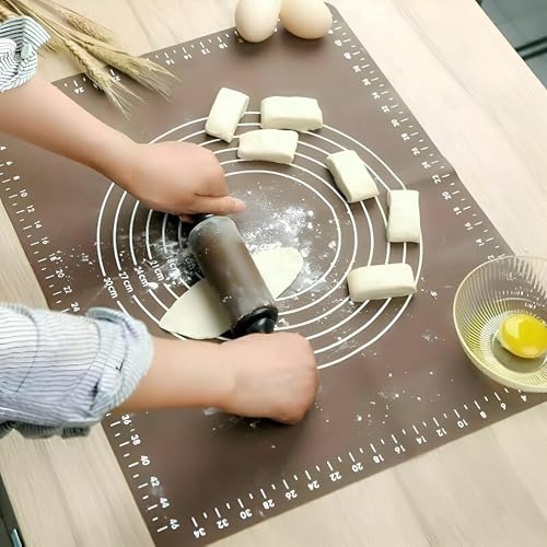 Generic - قاعدة عجين سيليكون غير لاصقة ومقاومة للحرارة مزودة بمقاييس دقيقة، خالية من البيسفينول أ وسهلة التنظيف، مناسبة لصنع الفطائر والمعجنات بمقاس 50 × 40 سم، لون بني