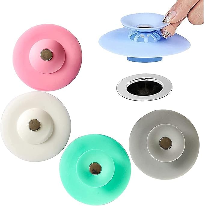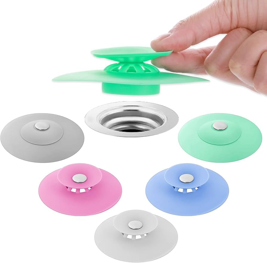 Generic - سدادة سيليكون مانعة للتسرب لحوض الاستحمام والمغسلة – سدادة تصريف مرنة لالتقاط الشعر- غطاء تصريف حوض المطبخ ، الحمام ، حوض الغسيل. متعددة الاستخدامات ودائرية الشكل (متعدد الألوان)