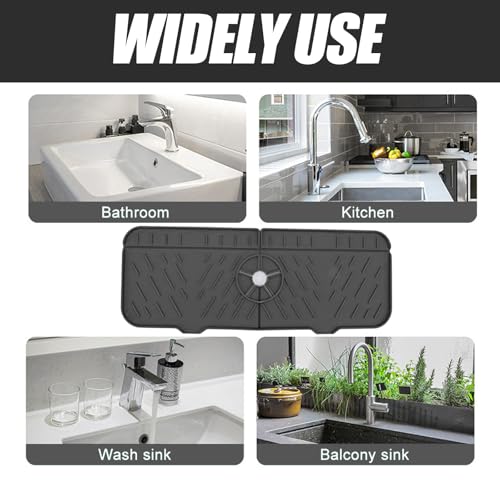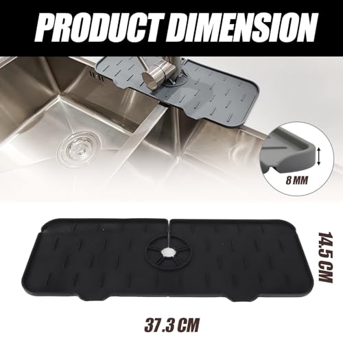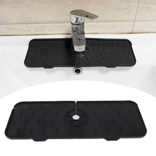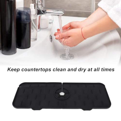 Enforose - مانع رذاذ للحنفية من السيليكون للحوض، حصيرة صينية التقاط التنقيط لمقبض الحنفية، ملحقات حوض المطبخ قابلة للغسل وإعادة الاستخدام، واقي من الرذاذ لحوض المطبخ والحمام (أسود)