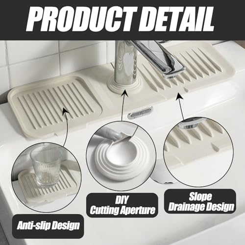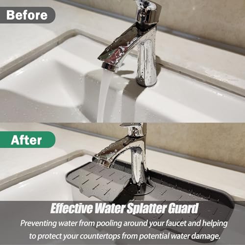 - تصريف بدون مجهود، نتائج بدون بقع: تصميم مبتكر منحدر 5 درجات، توجه هذه الواقيات المياه بعيدًا عن منطقة الحنفية، مما يضمن تصريفًا سريعًا دون وجود برك طويلة. ستقوم صينية التقاط قطرات الماء المصنوعة من السيليكون بالتقاط الماء من الحنفية وتصريفه نحو الحوض ولن تقلق بشأن سجادة القماش الرطبة أو بشأن غسل وتجفيفها. قل وداعًا لبقع الماء واستمتع بسطح جاف ونظيف باستمرار.