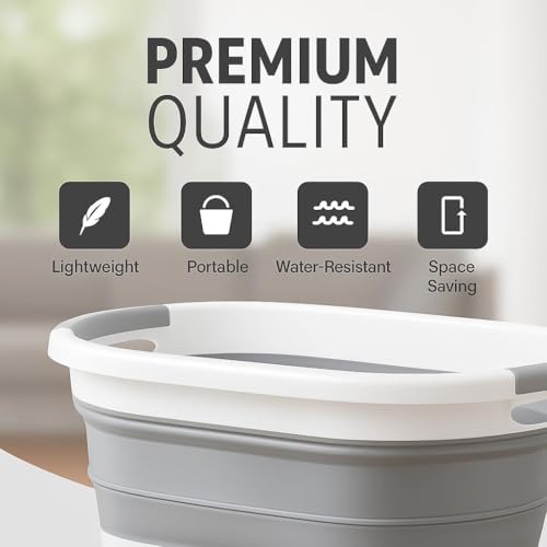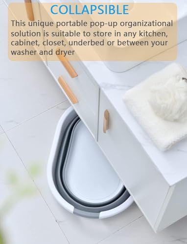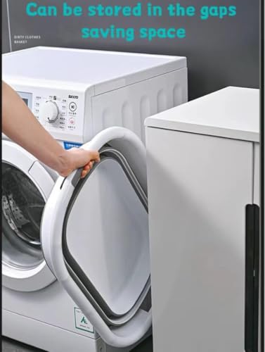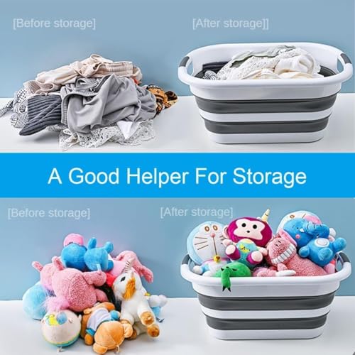 Generic - سلة حمام أطفال قابلة للطي من سيليكون وسلة غسيل بسعة 58 لتر، رمادي وأبيض