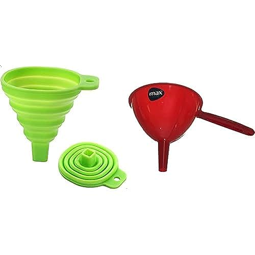 Generic - قمع سيليكون قابل للطي - اخضر + قمع بلاستيكي كبير بيد بألوان متنوعة من ماكس بلاست