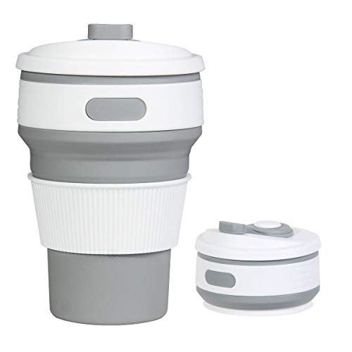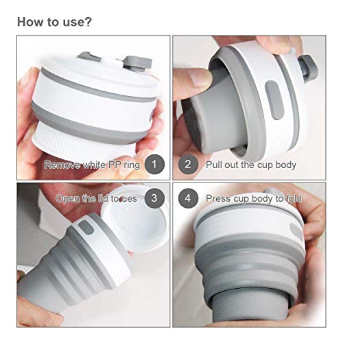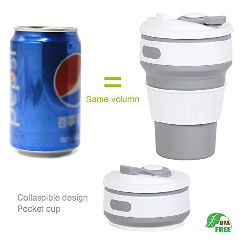 Other - كوب قهوة محمول يصلح للسفر مصنوع من سيليكون قابل للطي خالي بيسفينول السيليكون للرياضة الخارجية والتخييم رمادي
