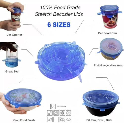 Generic - أغطية طعام سيليكون مرنة 6 قطع بأحجام متنوعة لحفظ الطعام ساخن وبارد قابلة لإعادة الاستخدام | من عام