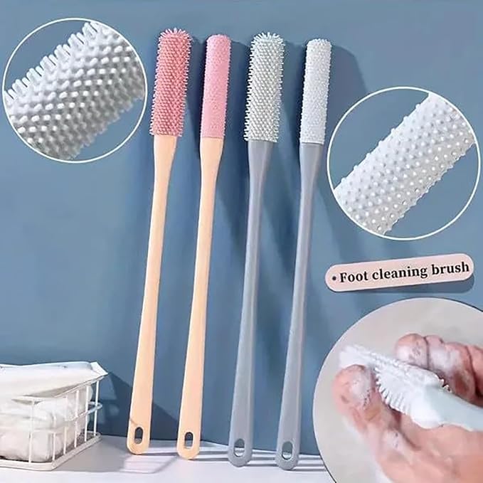 Generic - فرشاة قدم من السيليكون لتنظيف الفجوات بين اصابع القدم، فرشاة قدم للاستحمام، فرشاة استحمام بمقبض طويل، فرشاة تقشير القدم، لتنظيف اظافر القدم لكبار السن، لون عشوائي، قطعة واحدة