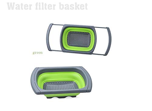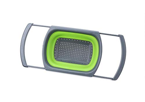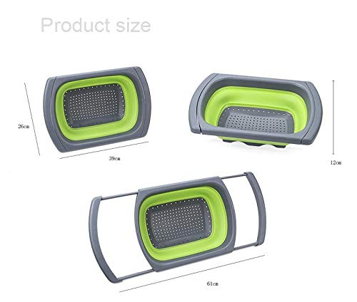 Generic - مصفاة قابلة للطي مع مقبض لتصفية وتنظيف الخضروات والفواكه، مصنوعة من السيليكون الامن غذائيا وقابلة للاستخدام في غسالة الصحون لتصفية المعكرونة والخضروات، لون اخضر