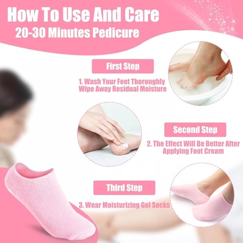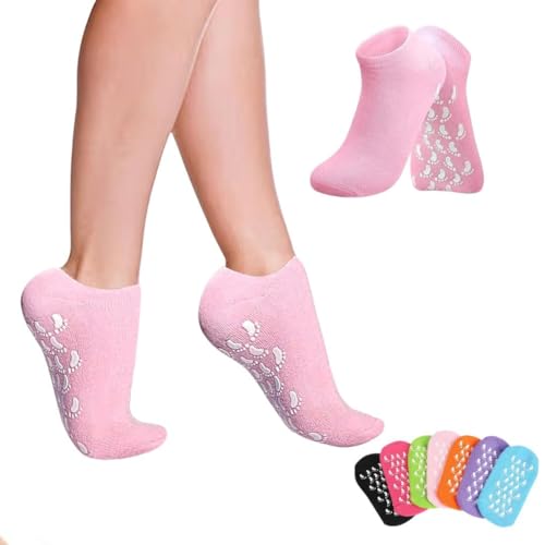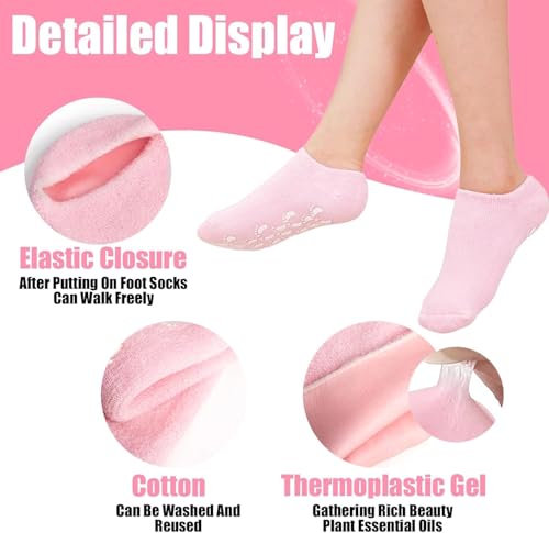 Generic - شراب جيل السيليكون لترطيب القدمين – جوارب قطنية طبية غنية بالزيوت العطرية وفيتامين E لعلاج جفاف وتشققات الكعبين والحصول على أقدام ناعمة كالحرير