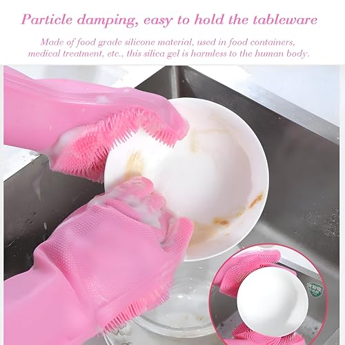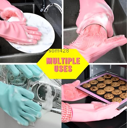 Generic - قفازات سيليكون قابلة لإعادة الاستخدام ومصممة لغسل الأطباق وتنظيف المطبخ وتفاصيل السيارة وتنظيف الحمام وإزالة شعر الحيوانات الأليفة؛ ملاءمة مرنة ومتينة ومقاومة للرذاذ بألوان متعددة، 2 قطعة