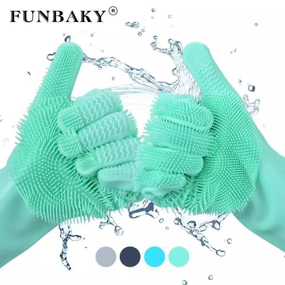 Generic - قفازات سيليكون للتنظيف وغسيل الأطباق، قفازات مطبخ متينة مع فرشاة مدمجة، رمادي، 2في1@