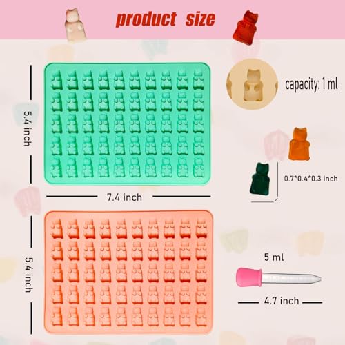 - 【ما ستحصل عليه】ستحصل على قطعتين من قوالب الدب الصمغية اللطيفة المصنوعة من السيليكون مع 50 تجويف. يمكنك الحصول على 100 قطعة حلوى لطيفة في كل مرة
