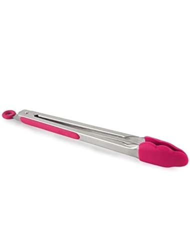 Generic - مقبض سيليكون من الستانلس ستيل للمطبخ والطبخ والشواء والسلطة، لون احمر وردي مع ضمان لمدة عامين للرضا والجودة
