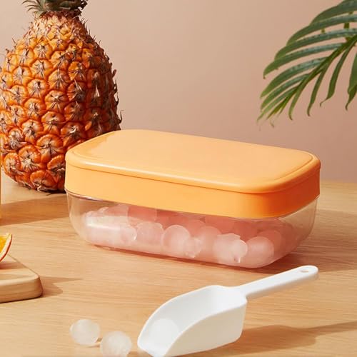 Generic - قالب كرات ثلج سيليكون مع جارف وعلبة تخزين شفافه بغطاء مناسب لتجميد القهوة والعصير وتقديمها في شكل أنيق وسهل التنضيف ويستخدم كتير | من عام