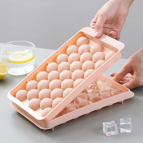 Generic - صينية كرات الثلج من السيليكون مع غطاء محكم الغلق لمكعبات الثلج المستديرة بدون مجهود، مثالية للمشروبات والكوكتيلات والحلوى والاستخدام في الحفلات