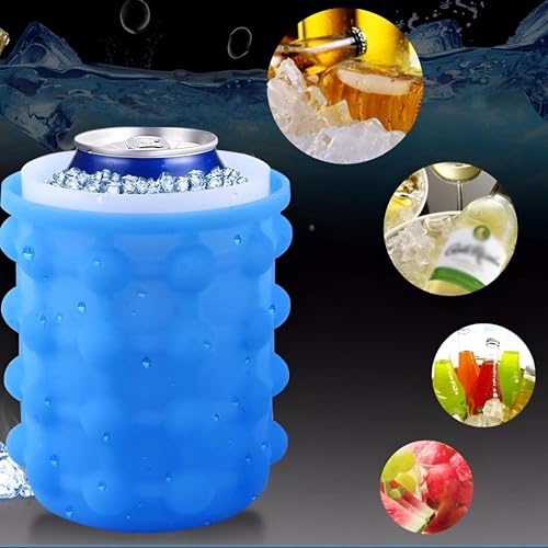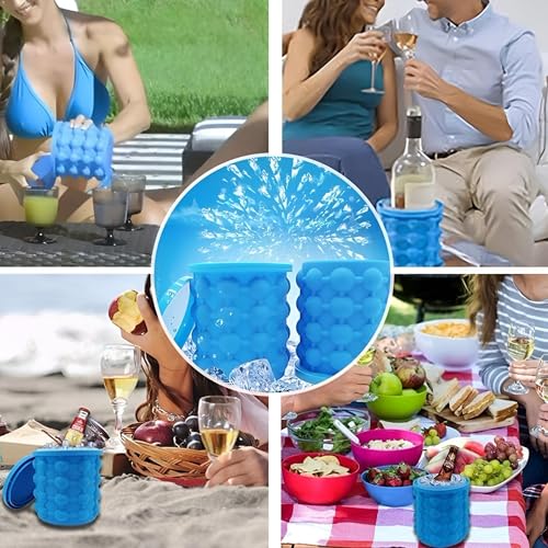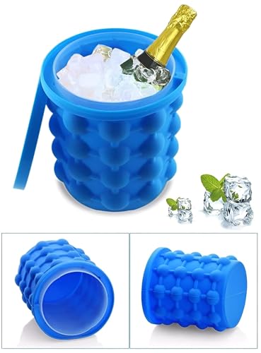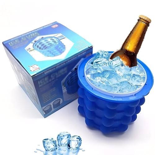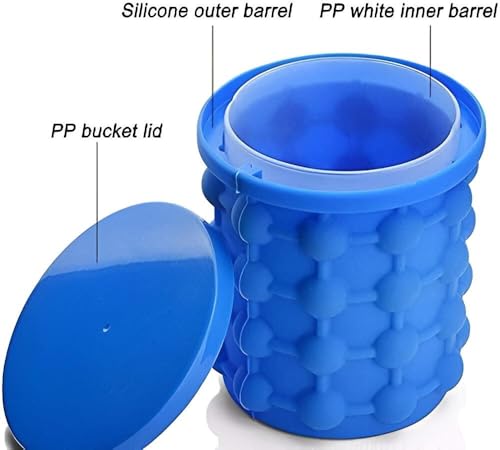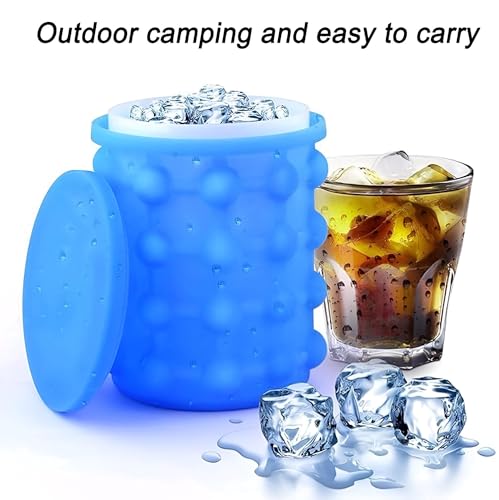 Generic - دلو ثلج سيليكون – قالب ثلج دائري كبير محمول مع غطاء لتجميد العصائر والكوكتيلات والمشروبات المنعشة، حاوية متينة وقابلة لإعادة الاستخدام للمنازل أو الحفلات الخارجية