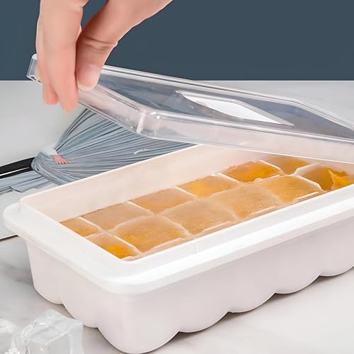 Generic - مكعبات مكعبات الثلج المصنوعة من السيليكون مع غطاء - تتميز بتصميم متين وغطاء مقاوم للانسكاب لسهولة التجميد، هذه القوالب مثالية للكوكتيلات والقهوة المثلجة والمزيد. الأبعاد: 22.7*12.6 سم، السعة: 330 مل.