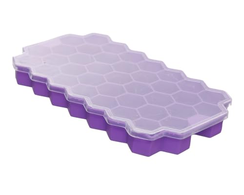 Generic - قالب مكعبات ثلج سيليكون بغطاء بلاستيك مقاس 12 × 20 ×2.5 سم - بنفسجي