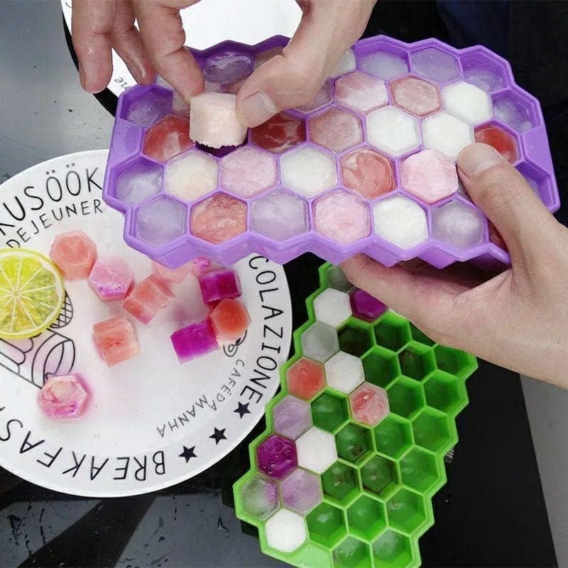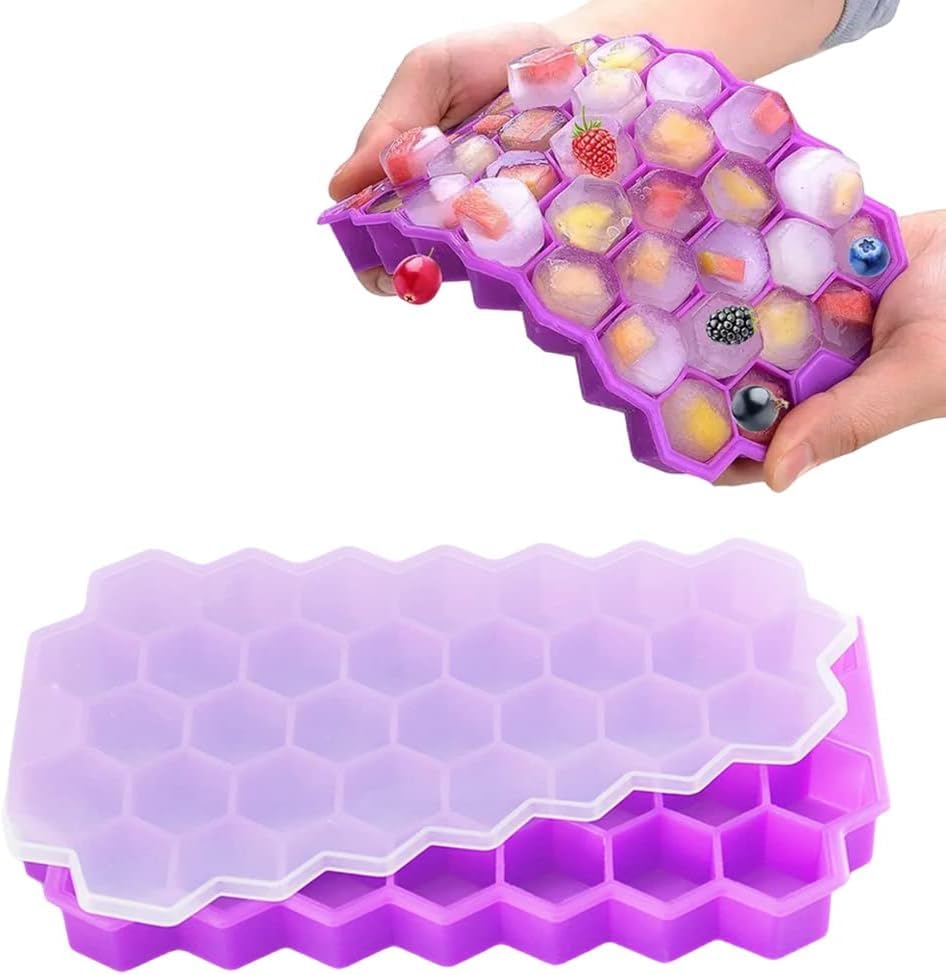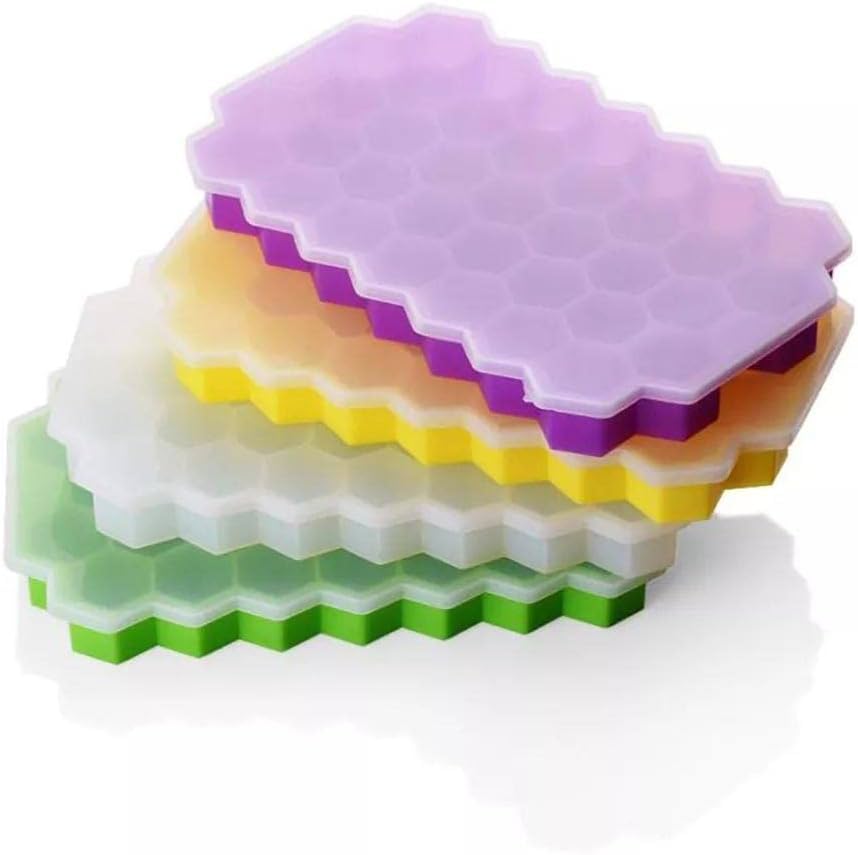 Generic - قالب ثلجي من السيليكون على شكل خلية مع غطاء، لون عشوائي، قطعة واحدة