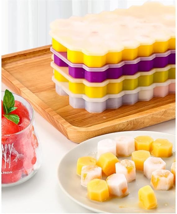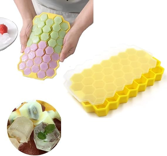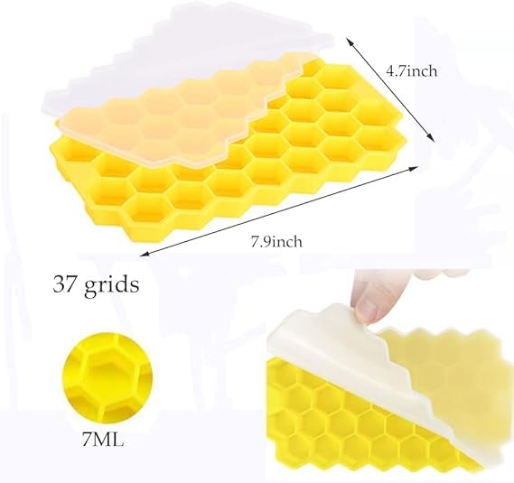 Generic - قالب ثلج سيليكون شكل خلية نحل 37 فتحة مع غطاء شفاف، مرن وسهل الفك لحفظ وتجميد الثلج K