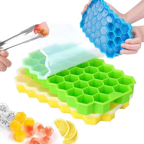 Generic - 🍹 قالب ثلج من السيليكون بشكل 🐝 خلية نحل مكوّن من 37 خلية لتجميد مثالي، مع غطاء شفاف 🧼 يمنع التسرب ويحافظ على المكونات. (3 قطع)