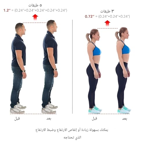 - 🥇 متين وغير قابل للانزلاق: تصميم نسيج على شكل حرف U على الظهر والالتصاق الفريد للنعل، الحماية المزدوجة تجعل الوسادة لزيادة الارتفاع تلتصق بإحكام بكعب الحذاء لمنع الفوضى في الحذاء.