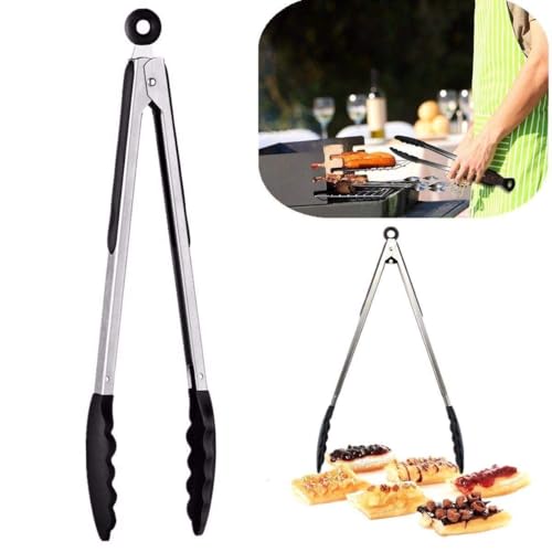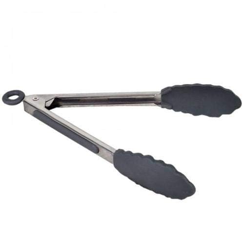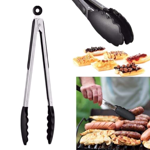 Spaceshoop - مساكة طعام للشواء وتقديم السلطة بممسك سيليكون ويد من الفولاذ المقاوم للصدأ، أسود