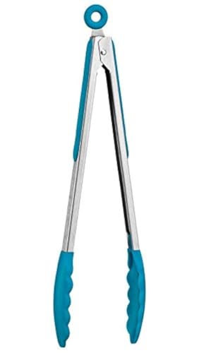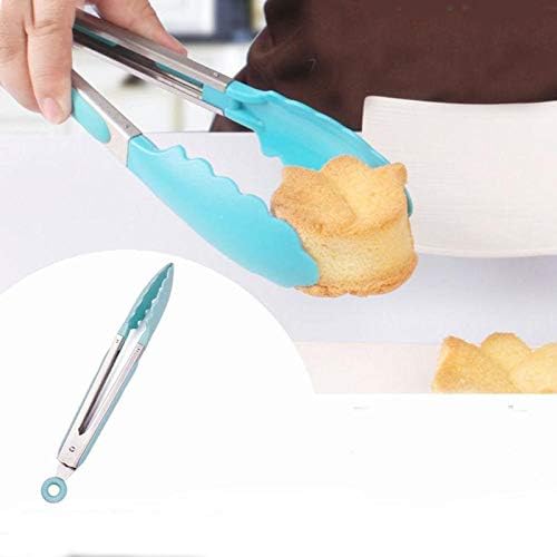 Spaceshoop - مساكة طعام من السيليكون للمطبخ والطبخ وتقديم السلطة والشواء بمقبض من فولاذ مقاوم للصدأ، أزرق