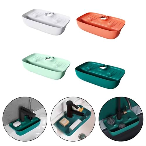 Generic - بساط سيليكون بواقي من الرذاذ لحوض المطبخ، وسادة تجفيف وتصريف بمنظم للحنفية، ألوان متعددة