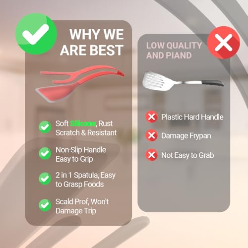 ZONZEST - ملعقة مطبخ من السيليكون، مقاومة للحرارة، خالية من BPA، اواني طهي غير لاصقة للبيض والاسماك والفطائر، احمر