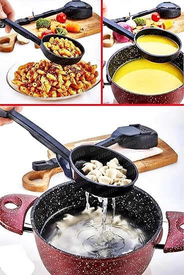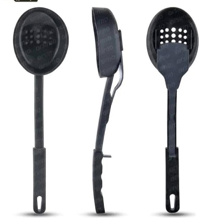 Generic - مصفاة سيليكون للمطبخ متعددة الاستخدامات، أسود، ٣ في ١، مغرفة ومعلقة ومصفاة، ١٥ سم