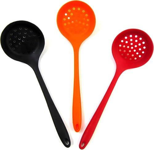 Generic - ملعقة مصفاة مطبخ من السيليكون مقاومة للحرارة حتى 232 درجة مئوية بمقبض طويل مقاومة للالتصاق وآمنة غذائيا، متعددة الألوان