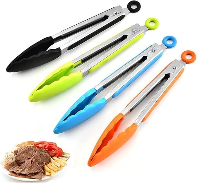Generic - ملاقط مطبخ من السيليكون، مشابك طهي ستانلس ستيل 21 سم، كماشة طعام متعددة الالوان للشواء والسلطة