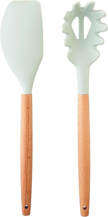 - تصميم عملي: مقابض خشبية مريحة للاستخدام مع رؤوس سيليكون مرنة تحمي أواني الطهي من الخدوش