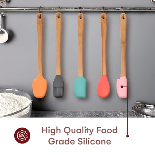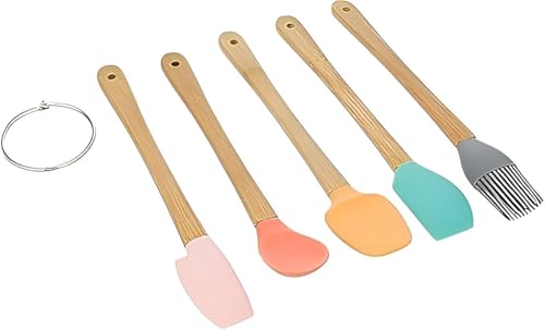 Generic - مجموعة ادوات مطبخ من السيليكون - تتضمن خمس ادوات أساسية: ملعقة مسطحة وملعقة وفرشاة ومكشطة وخلاط صغير لجميع احتياجات الطبخ