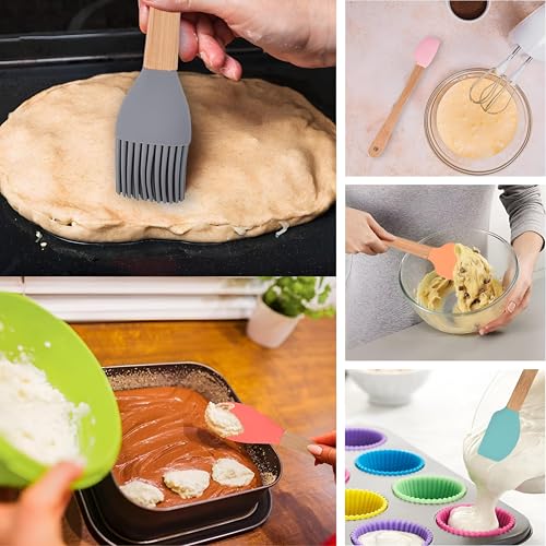 - تتضمن مجموعة المطبخ المصنوعة من السيليكون المكونة من 5 قطع فرشاة دهن سيليكون رمادية وثلاث ملاعق مسطحة باللون الأخضر والوردي والبرتقالي، بالإضافة إلى ملعقة سيليكون حمراء، كل منها مصمم بمقابض خشبية مريحة لقبضة مريحة وسهولة التخزين دون أن تشغل مساحة كبيرة في أدراج مطبخك.