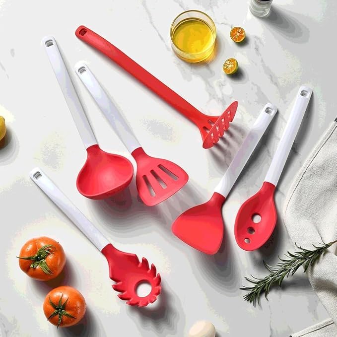 - مادة سيليكون آمنة غذائيًا، مقاومة لدرجات الحرارة العالية. التخزين العمودي المكدس يزيل أدوات المطبخ المتناثرة والفوضوية. خيارات طهي ملونة متعددة الألوان. يمكن تعليقها للتخزين، مما يحافظ على أدوات المطبخ منظمة. مرنة ومرنة ولن تتشوه ومتينة وناعمة ولن تتلف أواني الطهي. الاسم: طقم أدوات مطبخ من السيليكون مكون من 6 قطع المادة: سيليكون آمن غذائيًا